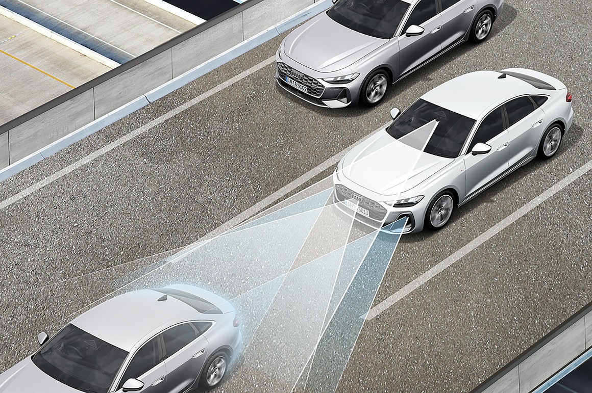 エマージェンシーブレーキアシストは、フロントの機能に加え、新たにリヤもカバーすることにより、車両後方の歩行者との衝突リスクがある際に介入し、車両前後の安全をサポートします(Audi S5 / SQ5にはリヤ機能が標準装備。Audi A5 / Q5シリーズはフロント機能のみ標準装備)。
