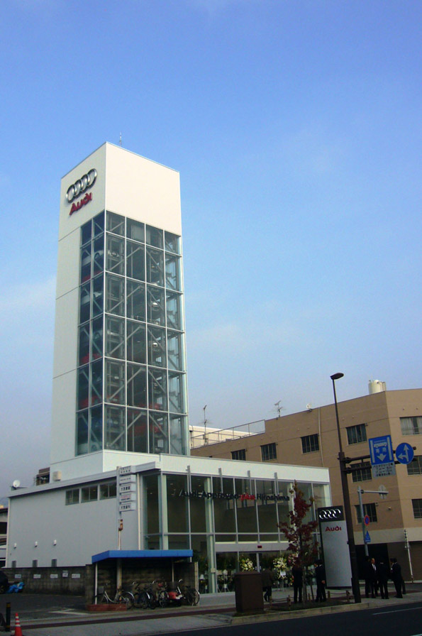 「Audi Approved 広島」は、アウディとして世界で初めてタワー型の中古車展示方式を採用しました。タワー型とすることにより敷地面積に対して効率よく中古車を展示・保管し、車両のコンディションを良好に保つことが可能な都市型店舗となっています。展示台数は、タワー部分に34台、ショールーム内に2台の合計36台。高さ33メートルを誇るタワーは遠方からの視認性にも優れ、近隣地域のランドマークにもなります。アフターサービスは近隣のアウディ広島(広島市西区観音町15-20)、及びアウディ広島インター(広島市安佐南区西原7-1-11)が対応します。
