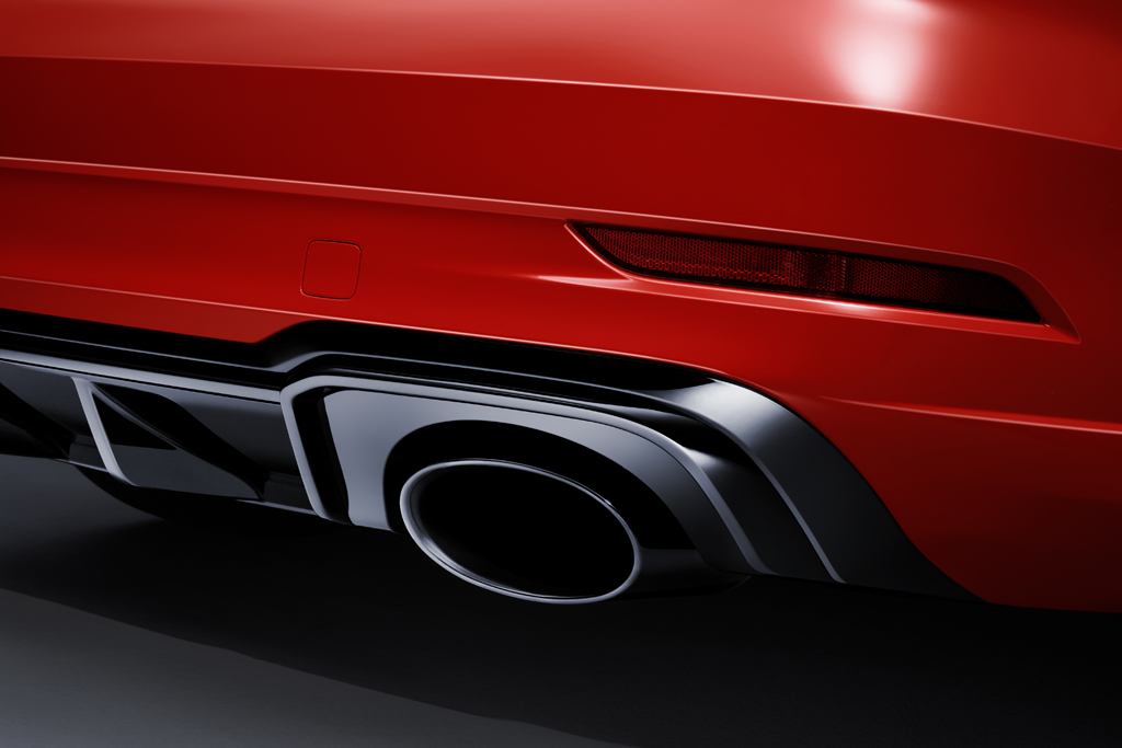 ラゲージコンパートメントリッドに固定されたスポイラーリップは、走行中のエアの隔離を改善(して空気抵抗を減らす)するためのものです。そのほか、垂直のストラットを備えたディフューザーインサートと、RSエグゾーストシステムの大きな楕円形テールパイプがリヤビューでの大きな特徴になっています。