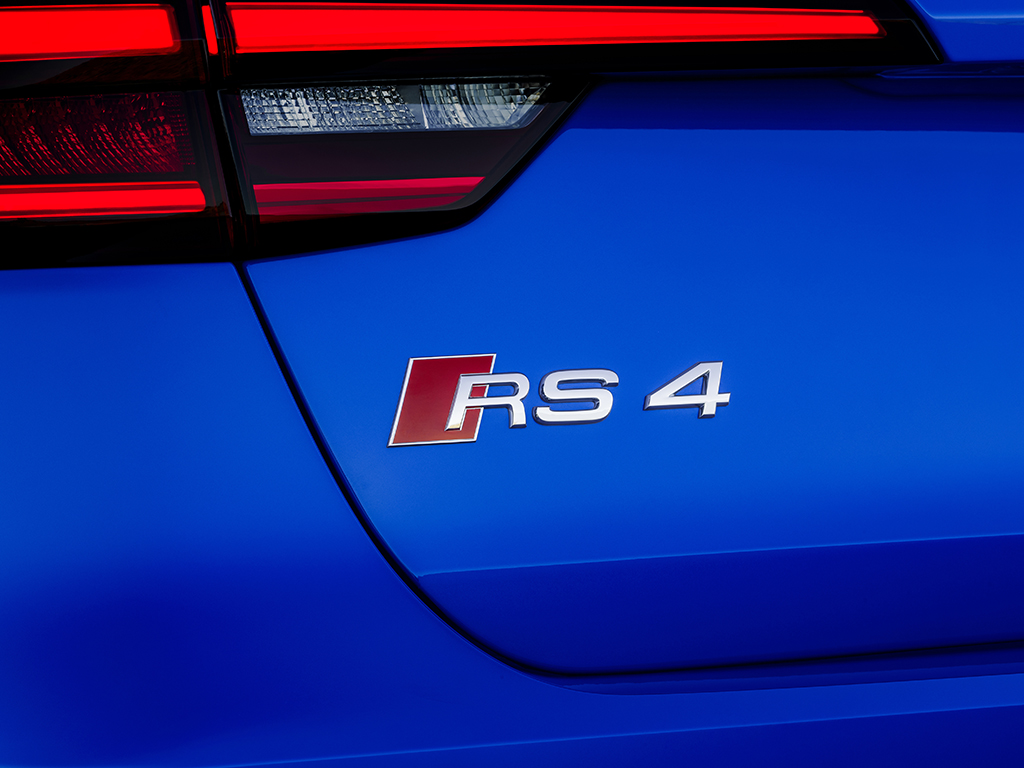 第4世代のAudi RS 4 Avantを開発するにあたり、担当デザイナーは、かつて北米のモータースポーツシーンを席巻したAudi 90 quattro IMSA GTOのディテールからインスピレーションを得ました。フロントエンドでは、RS特有のハニカムパターンを備えた大胆なエアインテークと、幅広くフラットなシングルフレームグリルが、精悍なイメージを創出しています。オプションのマトリクスLEDヘッドライトを選択すると、色付きのベゼルが装着されます。このモデルは、通常のAudi A4 Avantに対して、ホイールアーチ部分が30mm幅広くなり、quattroブリスターによって強調されています。リヤエンドでは、RS専用デザインのディフューザーインサートや、RSエキゾーストシステムのオーバルテールパイプ、RS専用デザインのルーフスポイラーなどにより、個性的なスタイルが演出されています。Audi exclusiveからオプションで提供されるエクステリアカラーのノガロブルーパールエフェクトは、1999年に発表された初代Audi RS 4 Avantを彷彿とさせます。標準装着されるホイールは、19インチの鍛造アルミ製で、オプションで20インチのホイールも注文可能です。