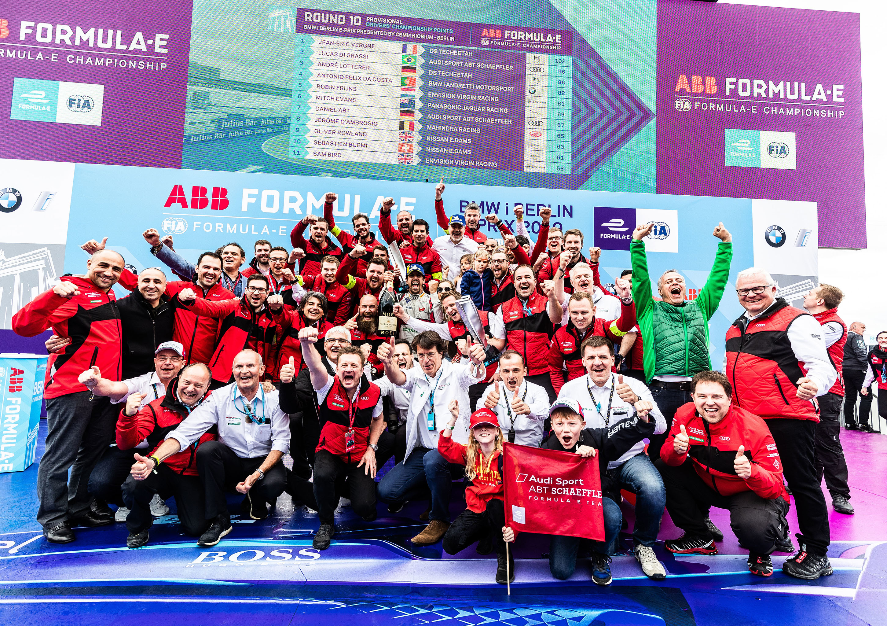 2019年5月25日、ベルリン:電気自動車のレースシリーズ、FIAフォーミュラE選手権の第10戦がドイツのベルリンで開催されました。Team Audi Sport ABT Schaeffler(チーム アウディ スポーツ アプト シェフラー)は、昨年ベルリンで優勝したダニエル アプトに続き、今年はルーカス ディ グラッシが勝利を収め、ドイツで開催されたホームラウンドで2連勝を達成しました。