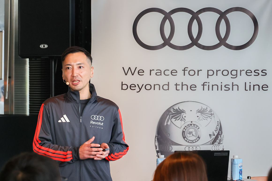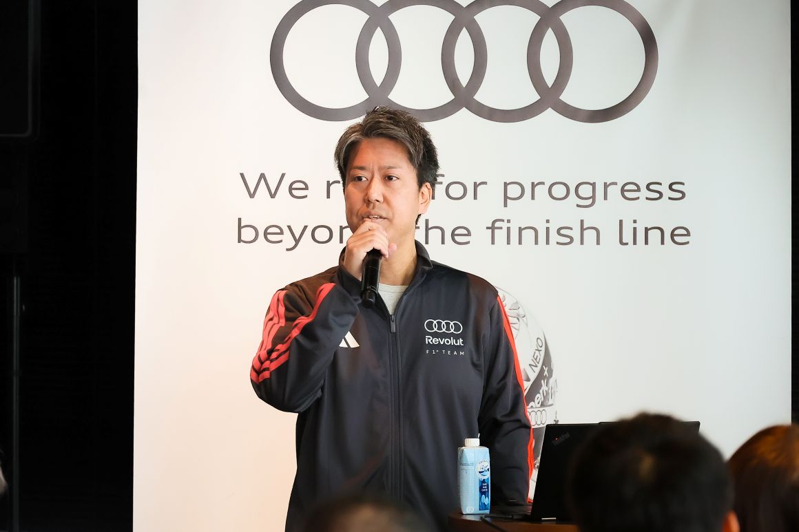 続いて、マーケティング本部から、日本国内でのアクティベーション施策を発表しました。3月27日から29日に開催されるF1日本グランプリにおいては、鈴鹿サーキット内のFAN ZONEでブランドブースを出展し、RS e-tron GT performance exclusive editionを展示します。全国の主要な販売店においては、Audi F1のブランディングツールを開発し、ショールームをF1カラーで装飾します。来場したお客様には、レース開催国のスイーツを提供し、シーズンを通じてお客様とレースの熱狂を共有して一体感を醸成していきます。また、ラジオのJ-WAVEとのタイアップで全11回にわたるオリジナルポッドキャストシリーズ「RACING FOR PROGRESS supported by Audi」を配信し、Audi Revolut F1 Team のレースでの様子や見どころのほか、技術背景、チームのストーリーを、シーズンを通じてお伝えします。これらの活動は、アウディジャパンのウェブサイトや公式SNSアカウントなどで多角的に発信し、年間を通じてファンエンゲージメントを推進します。
