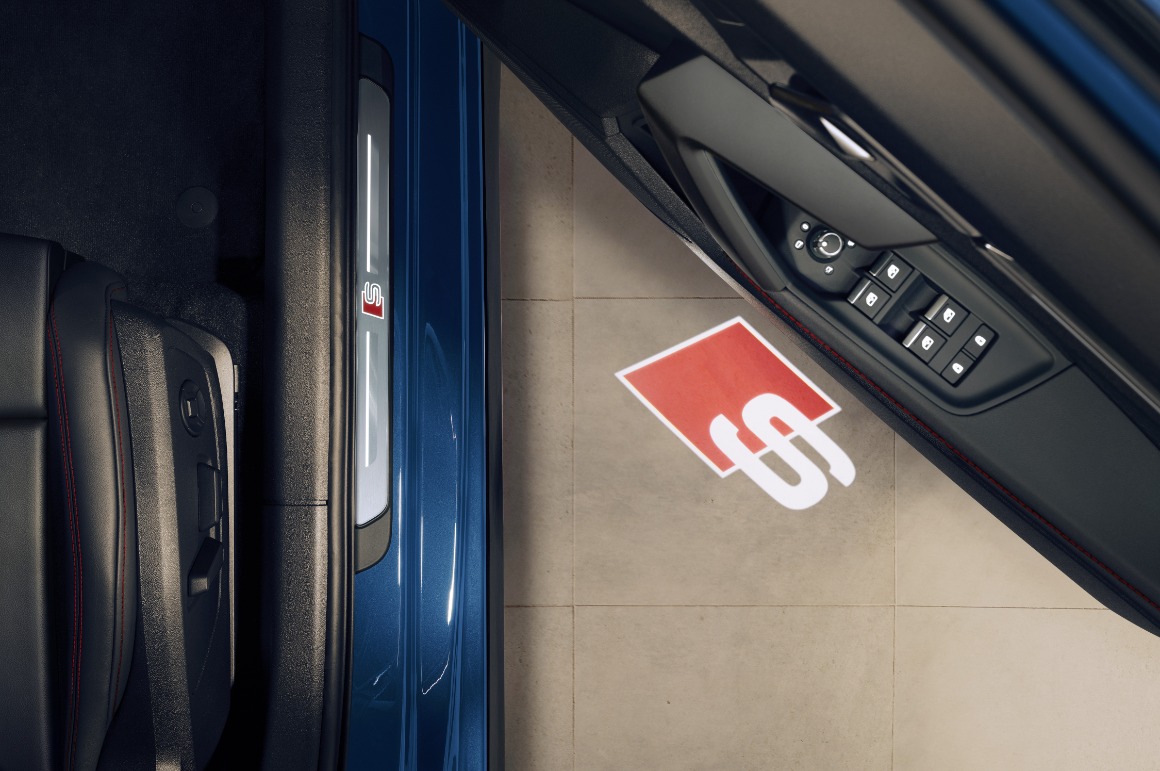 インテリアは、S line plusパッケージに含まれる、レッドのステッチを施したブラックのレザー/アーティフィシャルレザー製のS lineシート、プライバシーガラス、アウディドライブセレクトを装備します。また、MMIナビゲーションシステム、バーチャルコックピットプラス、アウディサウンドシステムにより構成されるナビゲーションパッケージも採用します。さらに、利便性と安全性を高次元で融合させた、電動調整機能付きフロントシート、アドバンストキーシステム、シートヒーターフロント、パークアシストプラス、サラウンドビューカメラ、アウディホールドアシスト、アダプティブクルーズアシスト/エマージェンシーアシスト、ハイビームアシスト、3ゾーンオートマチックエアコンディショナーにより構成されるコンビニエンス&アシスタンスパッケージを標準装備として、プレミアムなドライブエクスペリエンスを提供します。ドアを開ければ、特別装備のドアエントリーライトのSロゴが足元を照らします。スポーツシートにはAudi Sportレッドステッチが施され、ドライビングへの情熱を静かにかつ力強く主張します。室内を彩る、同じく特別装備のアンビエントライティングプロは、光の演出によって洗練されたラウンジのような心地よさを演出します。